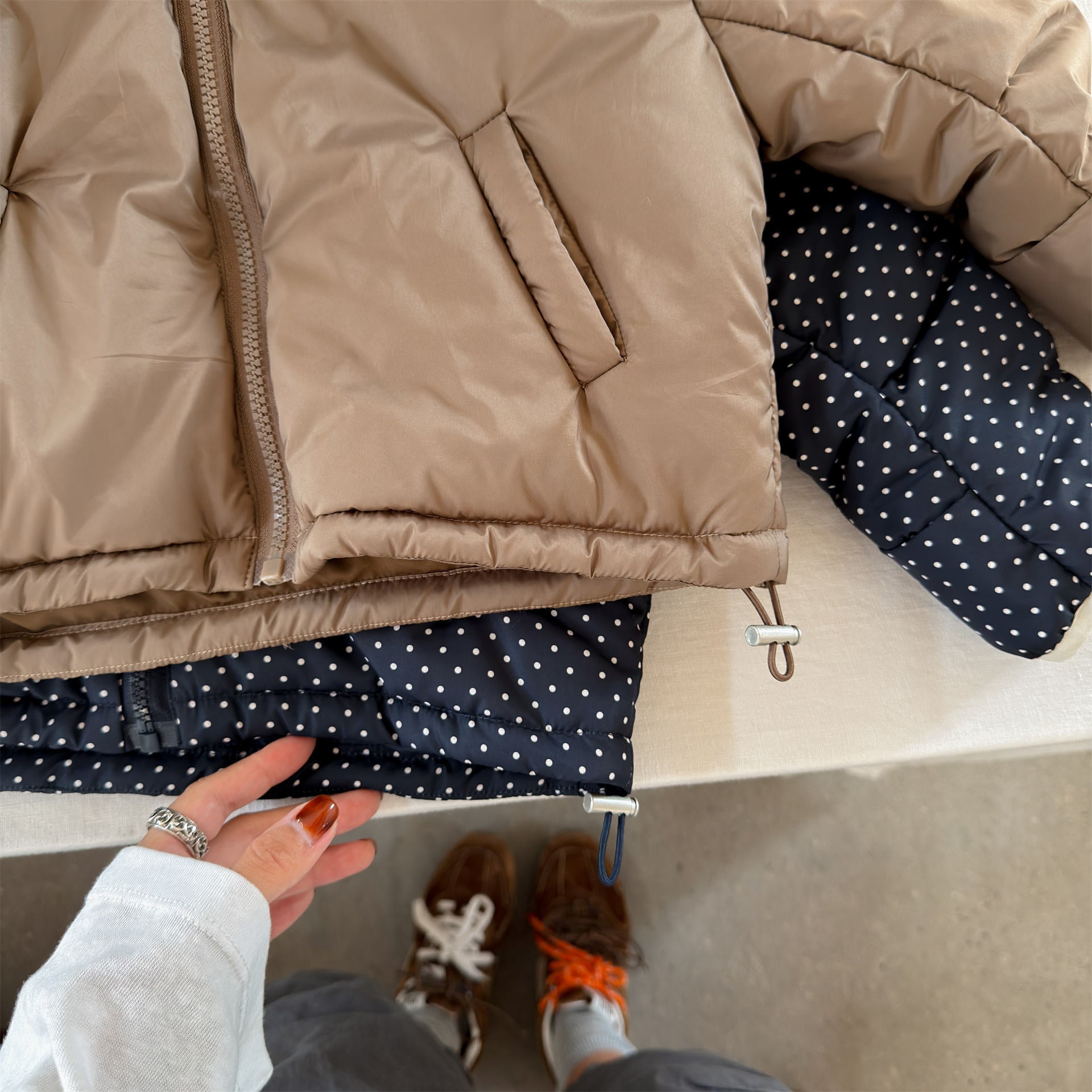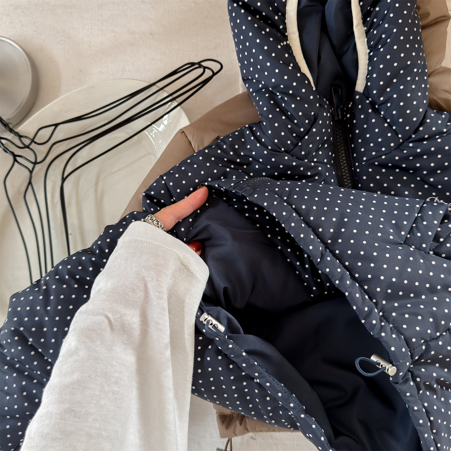 中綿フーディブルゾンジャケット 無地/ドット アウターコート【mh0011915】
