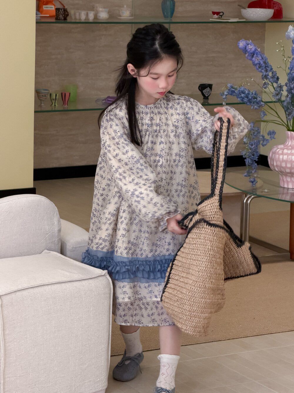 春風に揺れる森の記憶。繊細な花柄とレースが紡ぐ、ノスタルジックなパフスリーブドレス